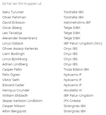 Efter helgens träningsmatcher så har ledarna tagit ut den trupp som ska representera Södermanland i Disktriktslags SM i Gävle. Två Torshällaspelare blev uttagna och vi sägger stort grattis till Oliver Fahlman och Saku Turunen till platserna!